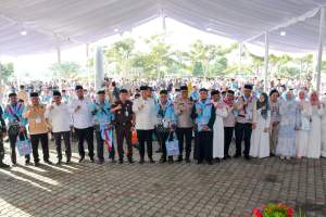 Rangkaian acara turut diisi dengan prosesi adat tepung tawar, penyerahan cendera mata, pemasangan identitas jamaah, hingga penyerahan bendera muktab sebagai simbol keberangkatan. Doa bersama dipimpin oleh pihak Kementerian Agama sebelum rombongan diberangkatkan.