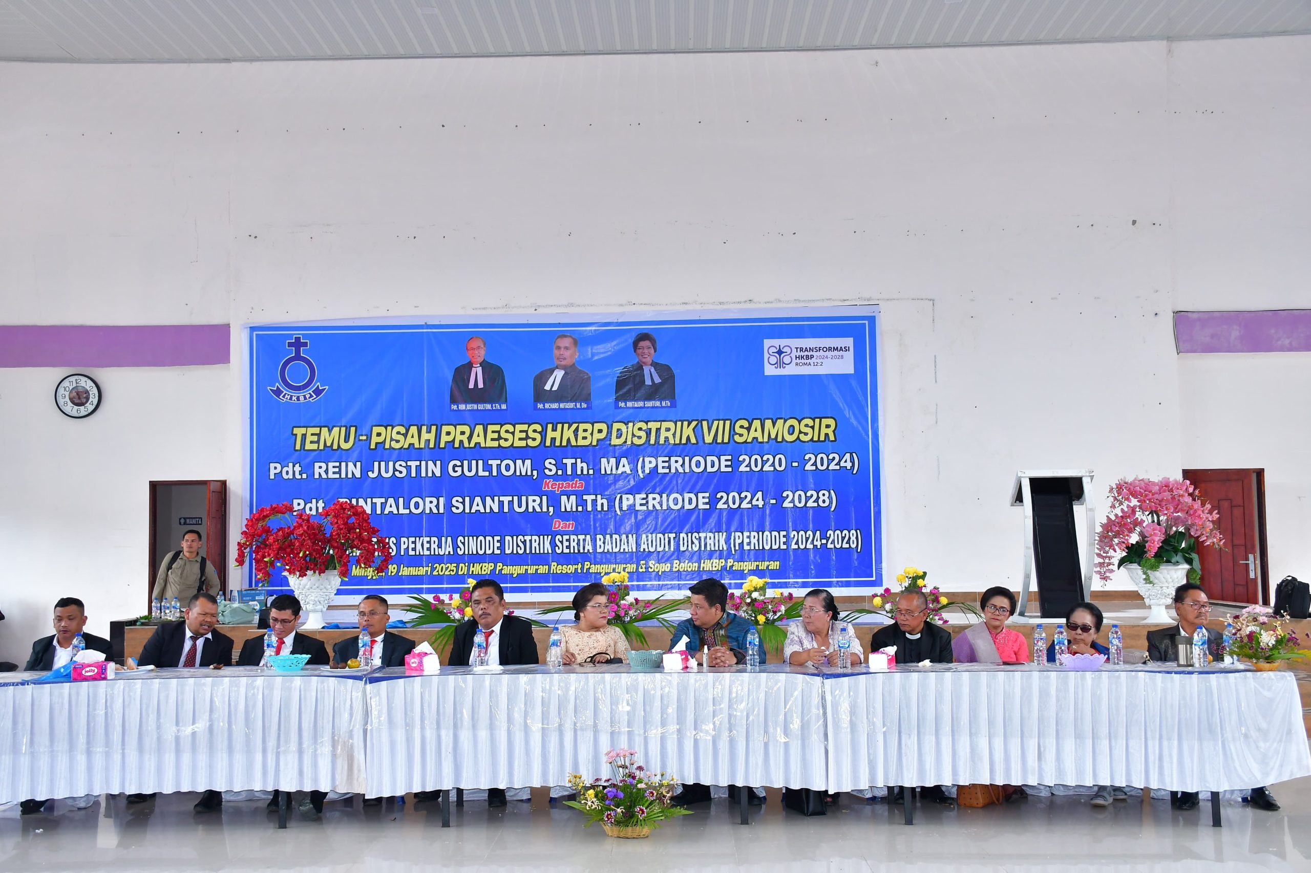 Mantan Praeses Distrik VII Samosir, Pdt. Rein Justin Gultom, mengucapkan terima kasih kepada seluruh masyarakat Samosir dan jemaat HKBP atas kebersamaan selama masa tugasnya. Ia juga menyampaikan apresiasi kepada Pemerintah Kabupaten Samosir, terutama Bupati Vandiko T. Gultom, atas segala dukungan dan kerjasama yang telah terjalin.