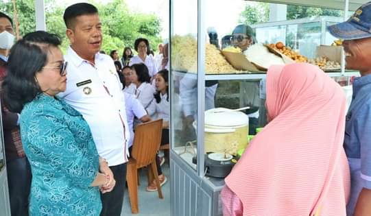 waroengberita.com – Simalungun | Ditandai dengan pengguntingan pita, Bupati Simalungun didampingi Ketua TP PKK Ny Ratnawati Radiapoh Hasiholan Sinaga melakukan Launching Kantin Marharoan Bolon, Rabu (11/1/2023).