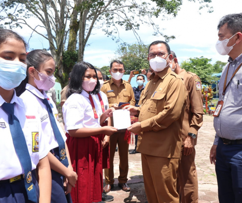 waroengberita.com – TOBA | Bupati Toba Ir. Poltak Sitorus didampingi Pj. Sekretaris Daerah Drs. Augus Sitorus bersama Pemimpin PT.Bank Sumut Cabang Balige Rudy Pardede menyerahkan beasiswa kepada siswa berprestasi di Toba. Beasiswa yang bersumber dari dana Corporate Social Responsibility (CSR) PT.Bank Sumut Tahun 2021 ini diserahkan secara simbolis di SMP N 1 Balige, Senin (7/3/2022).