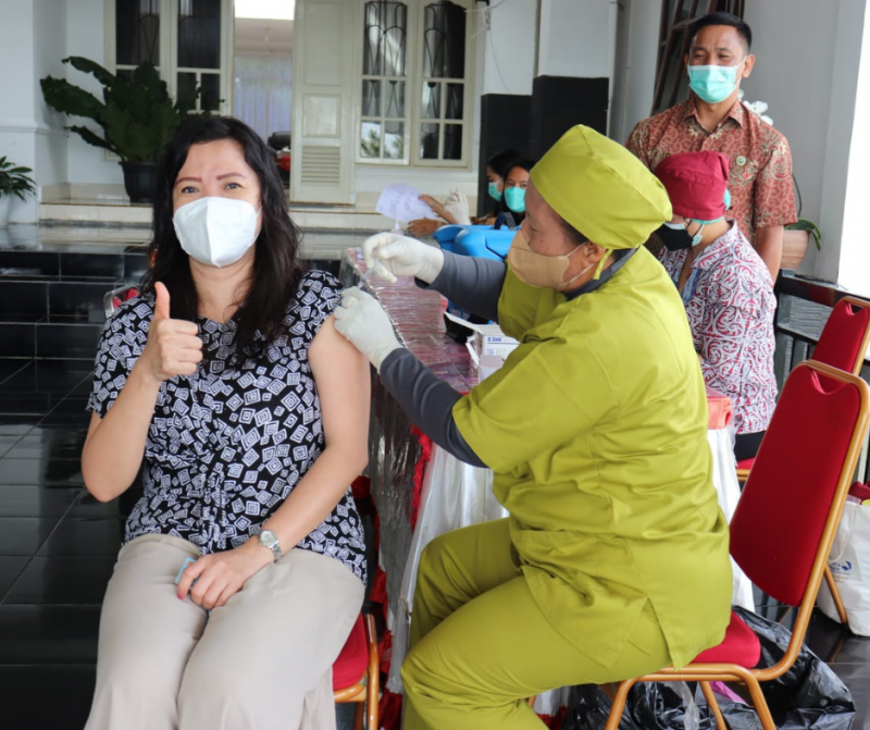 Pada kesempatan ini, Bupati Toba juga turut mengajak seluruh masyarakat di Kabupaten Toba melakukan vaksinasi agar timbul imunitas tubuh.