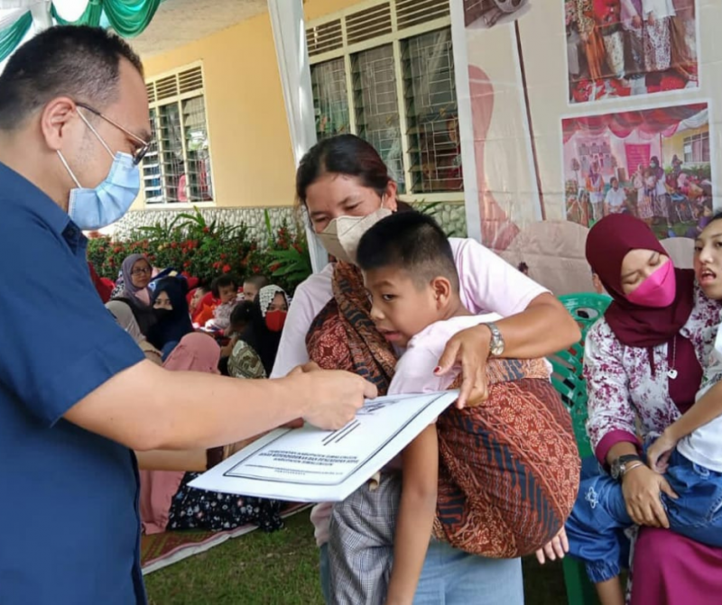 Selain memberikan pelayanan administrasi kependudukan, Pemkab Simalungun juga memberikan bantuan sembako kepada keluarga penyandang disabilitas yang koordinir oleh Ketua RRABK Erlina Sinaga.