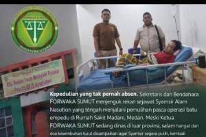 Pesan tersebut disampaikan melalui Sekretaris FORWAKA SUMUT, T. Andri Pratama, bersama Bendahara Awaluddin Lubis, yang hadir langsung menjenguk Syamsir di ruang perawatan. Kehadiran pengurus organisasi, ditambah salam dan doa Ketua dari kejauhan, menjadi simbol kuat bahwa FORWAKA SUMUT menjunjung tinggi nilai solidaritas dan persaudaraan di antara sesama insan pers.