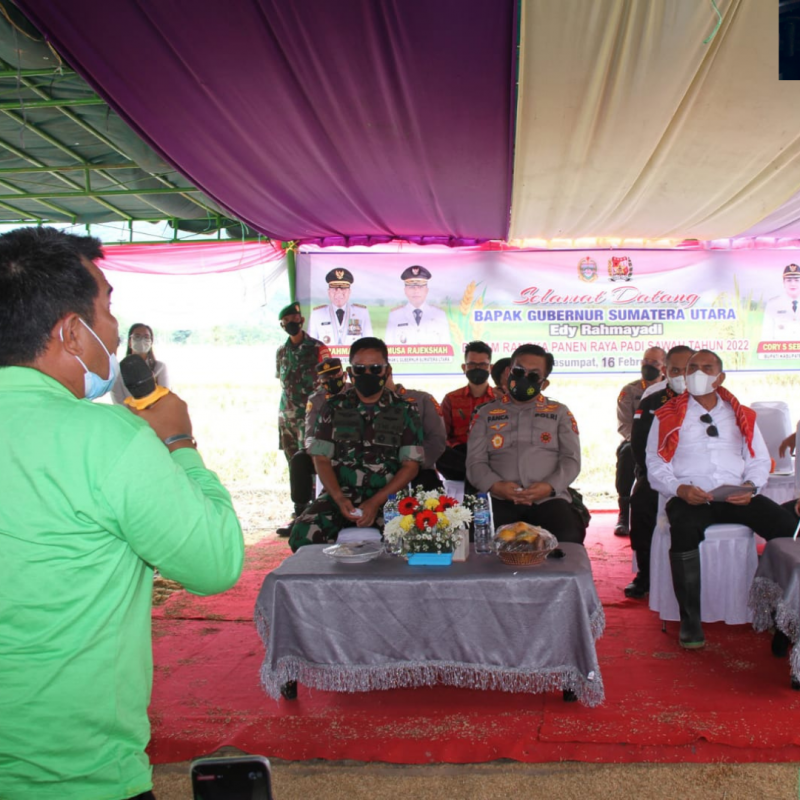 Setelah melakukan panen, Gubernur berkesempatan berdialog dengan para petani. Edy Rahmayadi menyampaikan ungkapan terima kasih kepada para petani yang sudah berkontribusi terhadap pemenuhan swasembada pangan di Sumatera Utara.