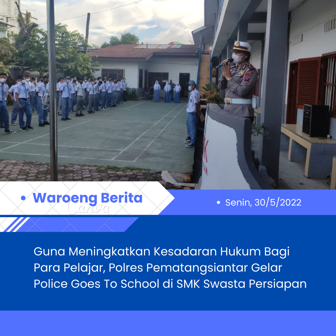 Kapolres Pematangsiantar AKBP Fernando SH, SIK melalui Kasat Lantas Polres Pematangsiantar AKP Relina Lumbangaol,S,SOS menyampaikan kegiatan ini dilaksanakan dalam rangka Police Goes to School dengan menyampaikan pesan pesan Kamtibmas dan sosialisasi tentang keselamatan berlalu lintas, dalam rangka membangun kesadaran hukum kepada masyarakat, dalam hal ini kalangan remaja. Sehingga dalam giat ini diberikan himbauan kepada pelajar khususnya SMK Swasta Persiapan.