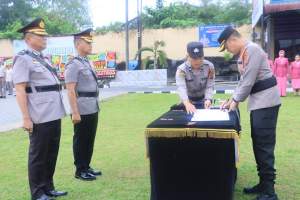 Rangkaian kegiatan berlangsung khidmat, dimulai dari laporan perwira upacara, pembacaan keputusan Kapolda Sumut, pengambilan sumpah jabatan, penandatanganan berita acara dan fakta integritas, hingga doa penutup. Seluruh proses berjalan tertib, aman, dan lancar.
