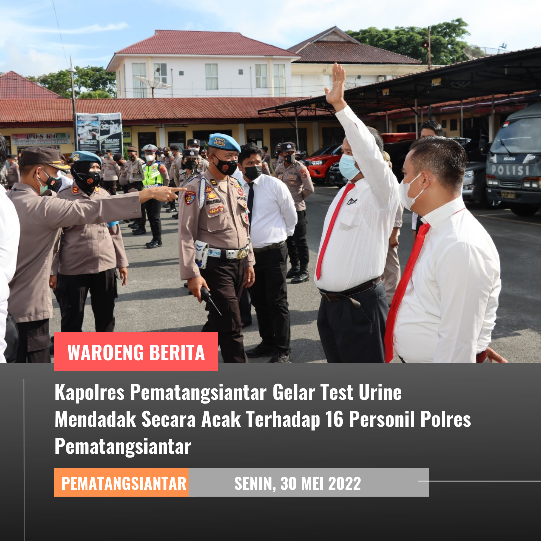 Tes Urine dilaksanakan dengan cara dadakan usai Apel Pagi yang dihunjuk langsung oleh Kapolres Pematangsiantar AKBP Fernando SH, SIK Sebanyak 16 Orang, Personel yang ditunjuk secara mendadak ini terdiri 2 Pejabat Utama,1 Perwira, 2 Polwan dan 11 Personil Lainnya dari masing masing Satker Polres Pematangsiantar.