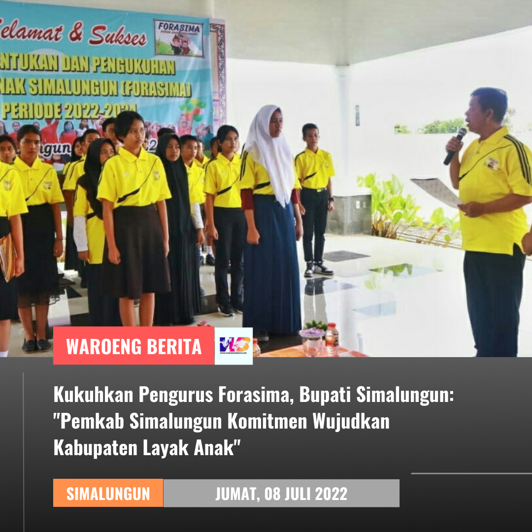 waroengberita.com – Simalungun | Bupati Simalungun Radiapoh Hasiholan Sinaga SH MH didampingi Wakil Bupati H Zonny Waldi mengukuhkan pengurus Forum Anak Simalungun (Forasima) priode 2022 – 2024, di Pendopo Rumah Dinas Bupati Simalungun Pematang Raya Kabupaten Simalungun, Sumut, Jum’at (08/07/2022).