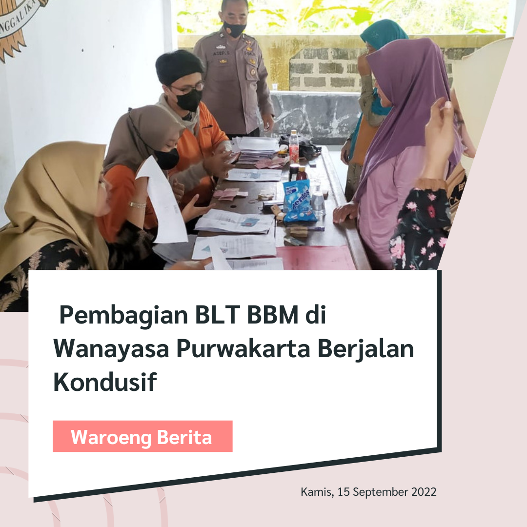 Tanggal 15 September 2022 adalah hari terakhir pembagian BLT BBM di Kab. Purwakarta. Sesuai harapan pemerintah, semoga bantuan tersebut dapat meningkatkan daya beli masyarakat di tengah kenaikan harga BBM yang melanda dunia akibat imbas perang Rusia – Ukraina.