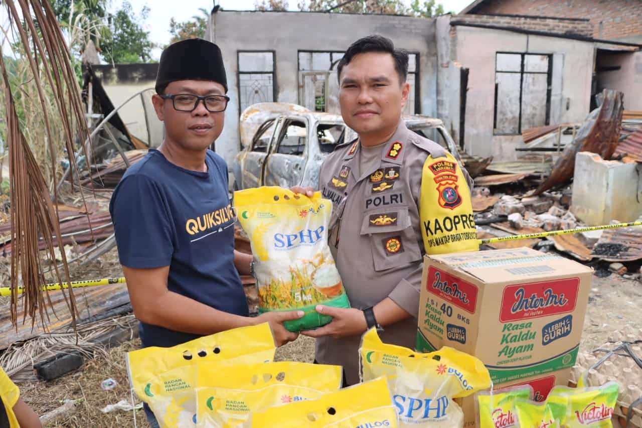 Bantuan tersebut diserahkan langsung oleh Kapolres yang didampingi Wakapolres berupa uang tunai dan sembako, serta bantuan materiil yang langsung diterima keluarga korban Junaidi Marpaung.