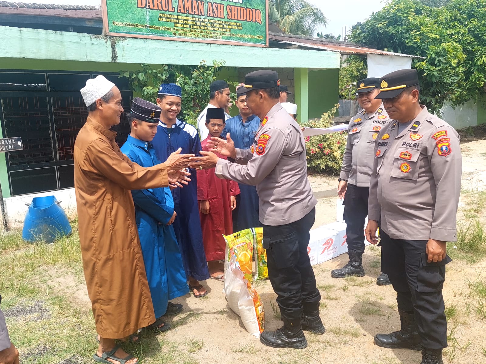 WaroengBerita.com – Labuhanbatu | Menyambut Hari Ulang Tahun Bhayangkara ke-79 yang akan jatuh pada 1 Juli 2025, Polsek Bilah Hulu Polres Labuhanbatu melaksanakan bakti sosial dengan memberikan bantuan sembako kepada Pondok Pesantren Tahfidz Qur’an Darul Aman Ash Shiddiq di Desa Pematang Seleng, Kecamatan Bilah Hulu, Kabupaten Labuhanbatu. Kegiatan ini dilaksanakan pada Minggu (22/6/2025) dan dipimpin langsung oleh Kapolsek Bilah Hulu, AKP Redi Sinulingga, didampingi Ketua Bhayangkari Ranting Bilah Hulu, Ny. Mariyam Redi, serta jajaran PJU Polsek, termasuk Wakapolsek Iptu K. Siagian, SH, Kanit Intelkam Iptu R. Ketaren, dan sejumlah perwira serta personel lainnya.
