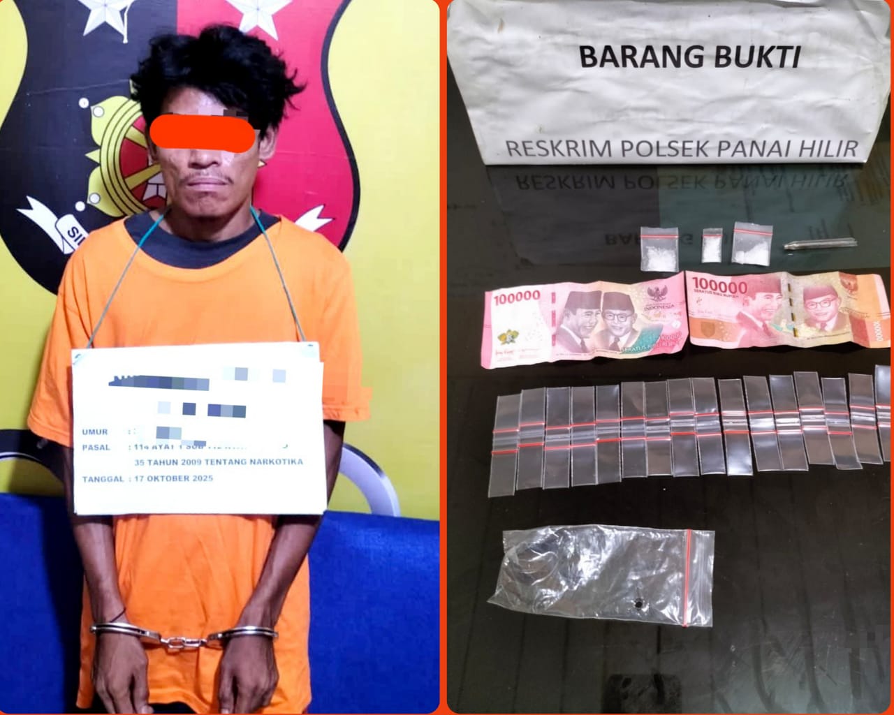 WaroengBerita.com – Labuhanbatu |Unit Reserse Kriminal (Reskrim) Polsek Panai Hilir, Polres Labuhanbatu, kembali menorehkan prestasi dalam pemberantasan peredaran narkoba. Seorang pria berinisial NA alias Mat (30), yang berprofesi sebagai nelayan, berhasil diringkus di Kelurahan Sei Berombang, Kecamatan Panai Hilir, Kabupaten Labuhanbatu, pada Jumat (17/10/2025).