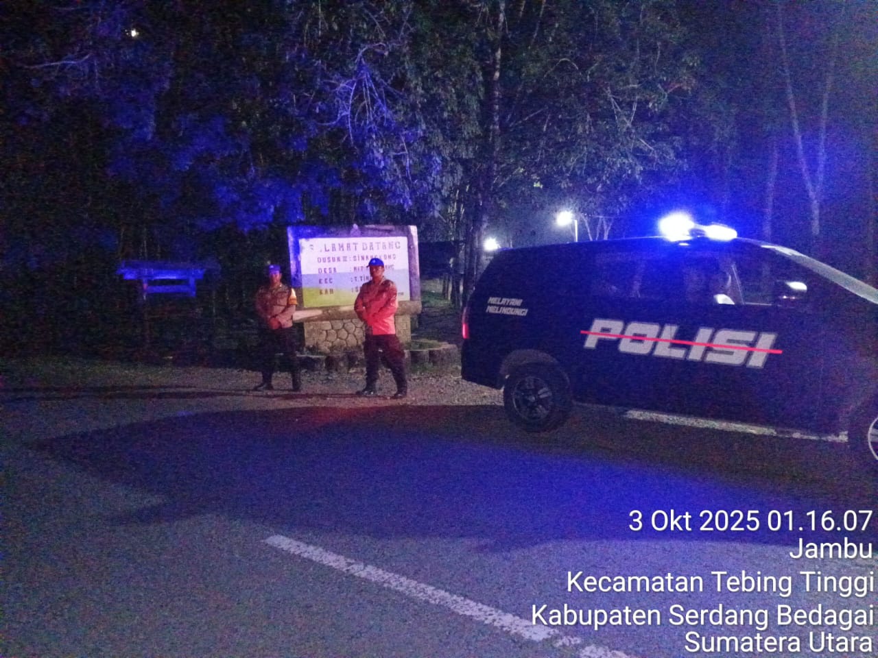 WaroengBerita.com – Tebing Tinggi |Polsek Tebing Tinggi patroli blue light antisipasi tindak kejahatan di sejumlah titik rawan pada Jumat dinihari (3/10/2025). Kegiatan ini dilakukan oleh personel Polsek Tebing Tinggi Resor Tebing Tinggi, yakni Aipda Sukamto, Aipda JS Sitanggang, dan Bripka Nurmansyah, sebagai upaya memberikan rasa aman kepada masyarakat pada malam hari.