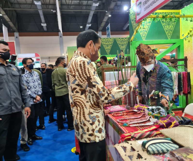 Usai membuka acara, Jokowi melihat-lihat produk kerajinan tangan yang dipamerkan di stand masing-masing daerah dari seluruh Indonesia.