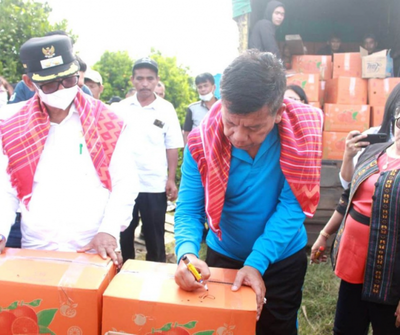 “Kita patut bersyukur apa yang telah diberikan Tuhan kepada kita. Beberapa waktu lalu kita lakukan launcing Pengiriman Jeruk dengan Brand Simaloegoen dan ini akan terus berkelanjutan, dan kita hingga sapai hari ini sudah mengirimkan 50 ton Jeruk ke Pasar Induk Keramat Jati,”sebut Bupati.