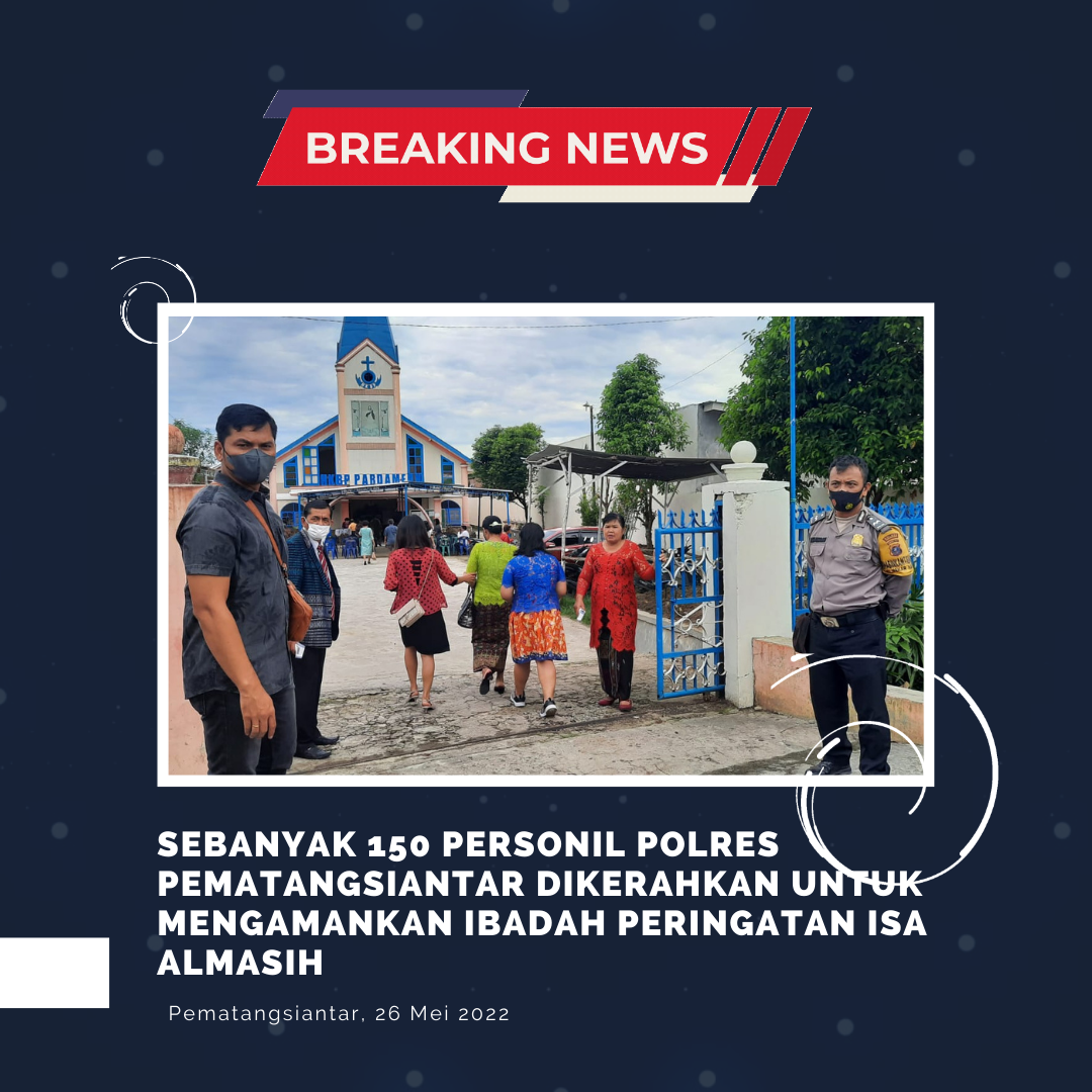 waroengberita.com – Pematangsiantar | Kapolres Pematangsiantar, AKBP Fernando kerahkan 150 Personil Polres Pematangsiantar dalam pengamanan Ibadah Peringatan Isa Almasih di beberapa Gereja di Kota Pematangsiantar, Kamis (26/5/2022).