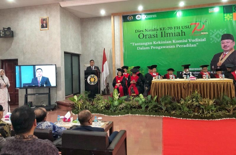 WaroengBerita.com – Medan | Ketua Komisi Yudisial (KY)Prof. Amzulian Rifai, S.H., LL.M menyampaikan orasi ilmiah…