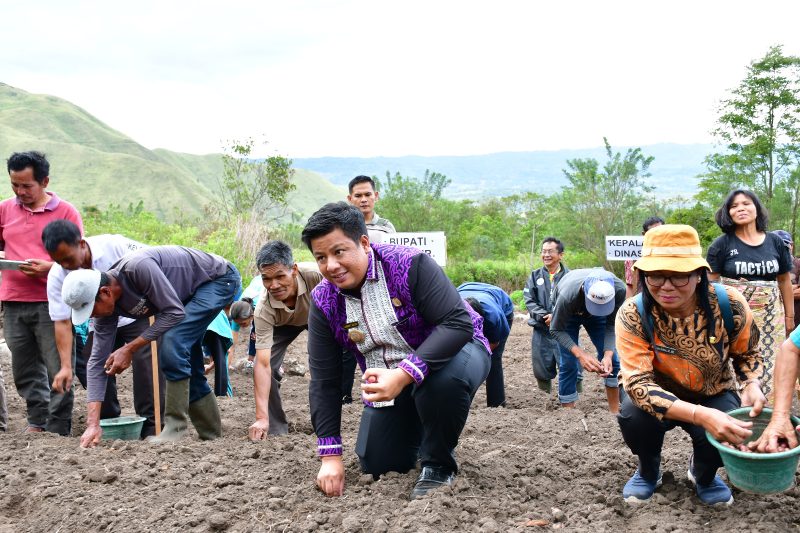 WaroengBerita.com – Samosir | Bupati Samosir Vandiko Timotius Gultom, ST melakukan pertanaman bawang secara simbolis…