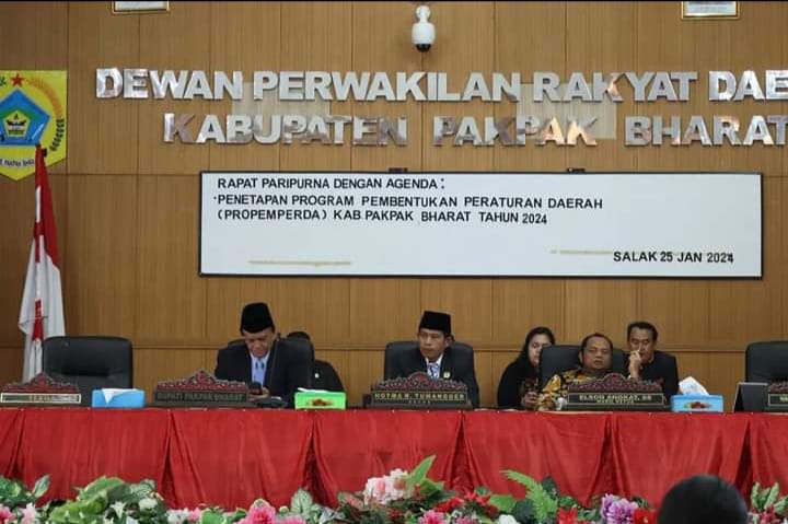 Dewan Perwakilan Rakyat Daerah (DPRD) kabupaten Pakpak Bharat menggelar sidang paripurna mengagendakan penetapan Program Pembentukan Peraturan Daerah (PROPEMPERDA) Tahun 2024.