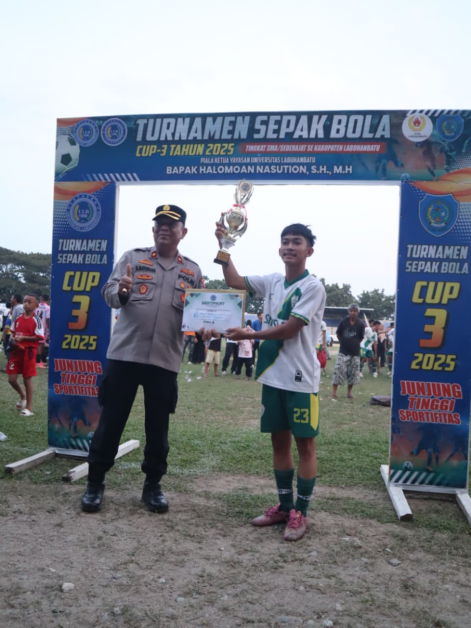 WaroengBerita.com – Labuhanbatu |Wakil Kepala Kepolisian Resor (Wakapolres) Labuhanbatu, Kompol H. Matondang, S.H., M.H., menghadiri pembukaan Turnamen Sepak Bola Tingkat SMA sederajat se-Labuhanbatu Raya yang memperebutkan Piala Bergilir Ketua Yayasan Universitas Labuhanbatu, Halomoan Nasution, S.H., M.H. Cup III Tahun 2025, di Stadion Binaraga, Kecamatan Rantau Utara, Kabupaten Labuhanbatu, Kamis (30/10/2025).