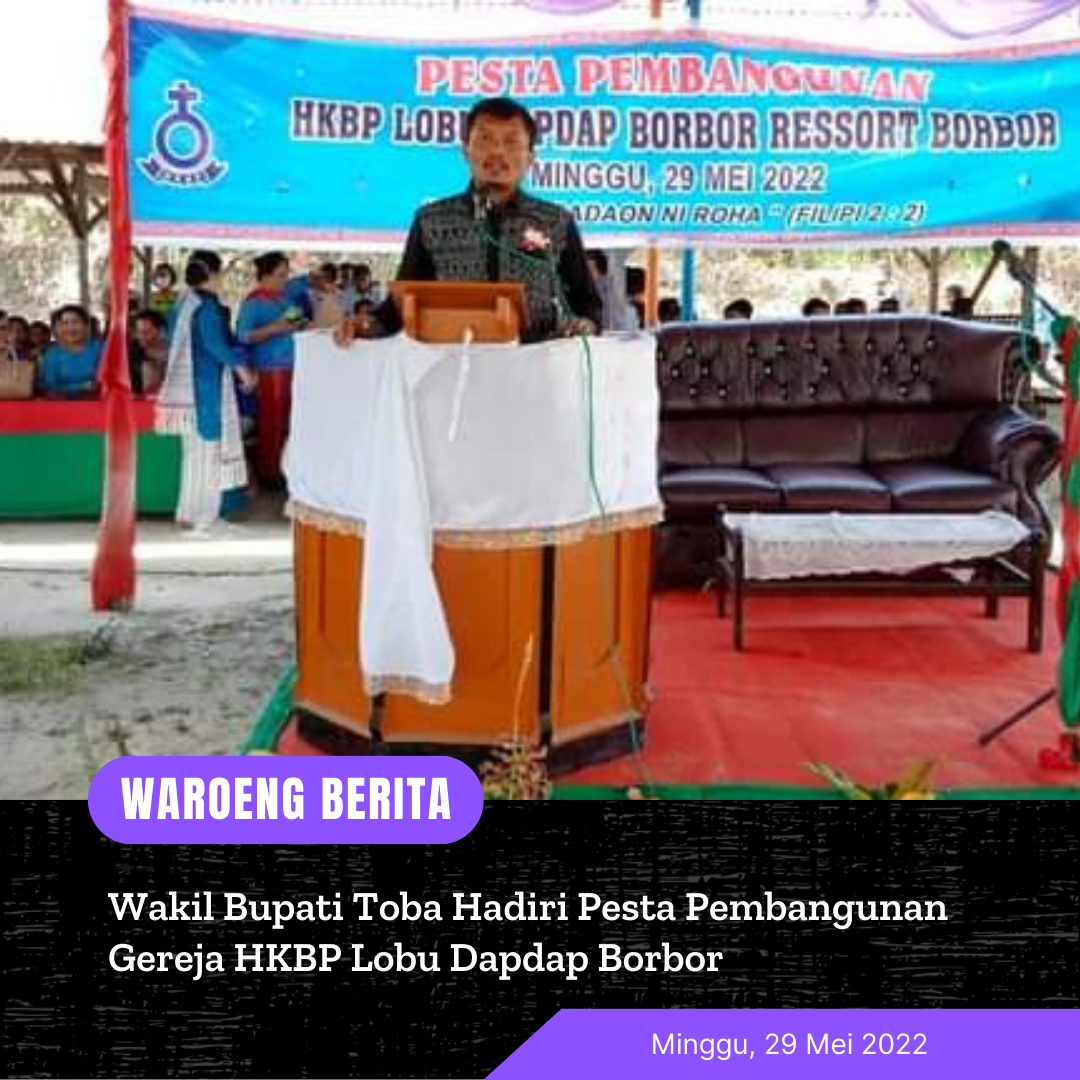waroengberita.com – TOBA | Wakil Bupati Toba Tonny M. Simanjuntak menghadiri Acara Pesta Penggalangan Dana untuk Pembangunan Gereja Huria Kristen Batak Protestan (HKBP) Lobu Dapdap Ressort Borbor di Kecamatan Borbor, Kabupaten Toba, Provinsi Sumatra Utara, Minggu (29/5/2022).